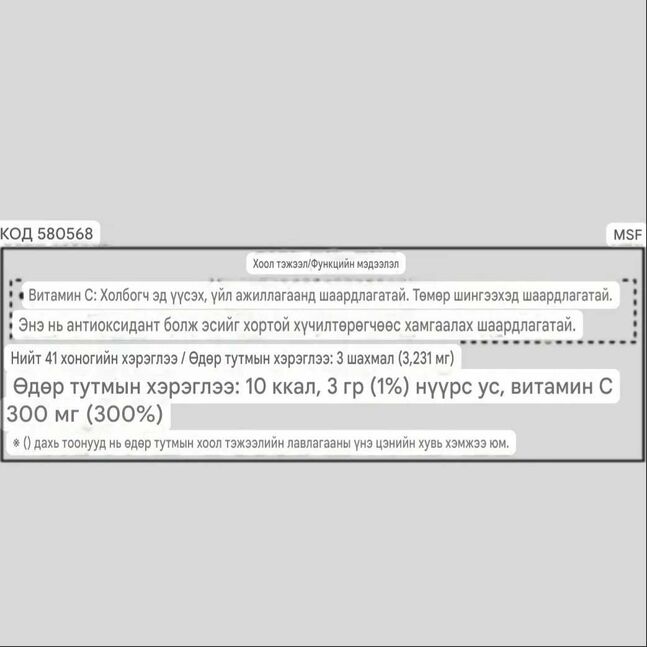 🍊 Жимс агуулаагүй, цэвэр витамин C
