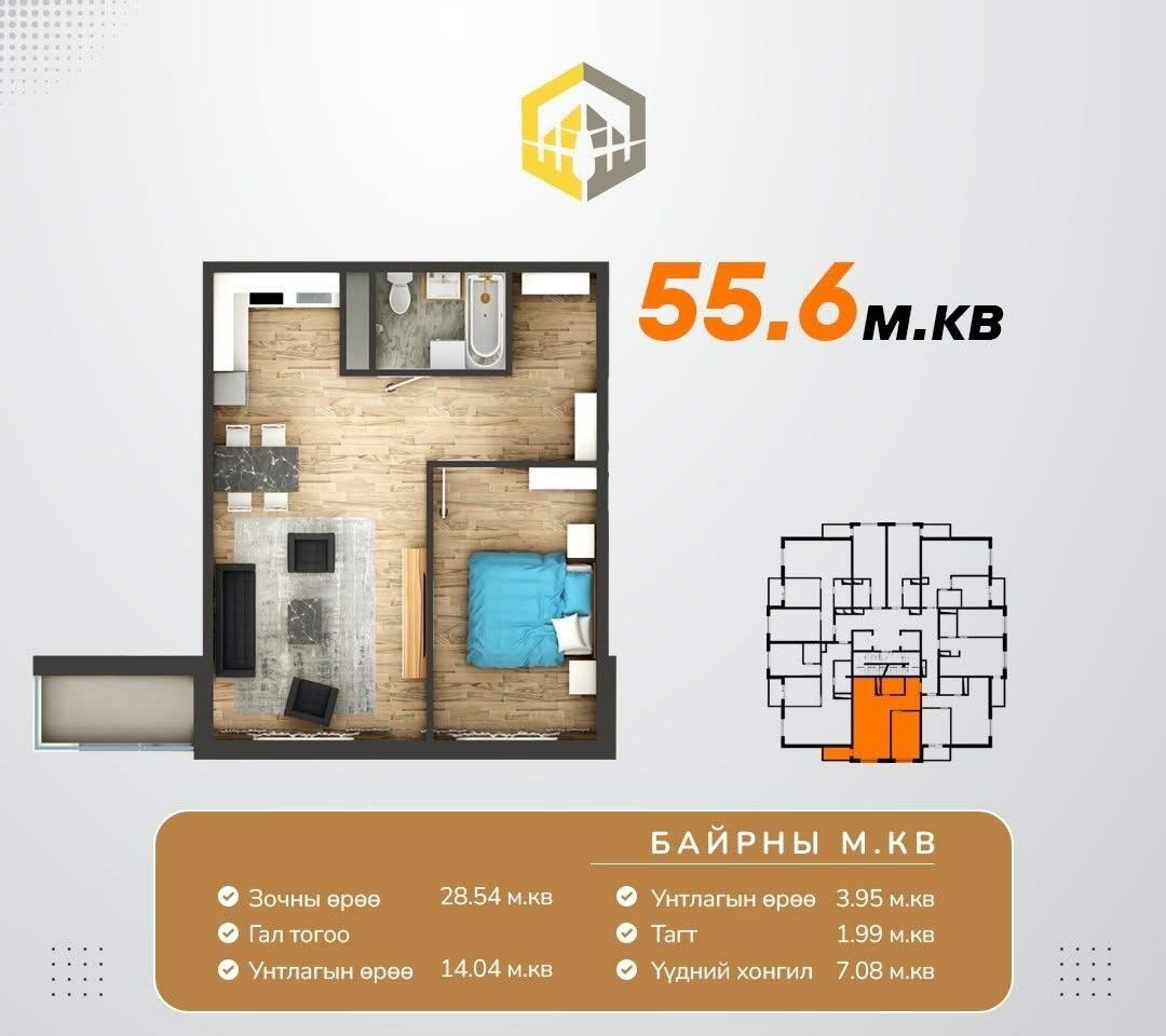 Нисэх N palace 55.6м2 2 өрөө ыайр зарна