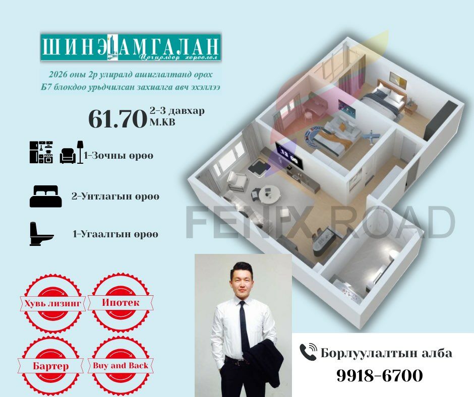 шинэ амгалан б7 блок дээр урьдчилсан захиалга авна 66.29 63.86 63.66 мк 4,5,6,7,11,12,14,15,16 давхарууд дээр 3 өрөө байрнууд
