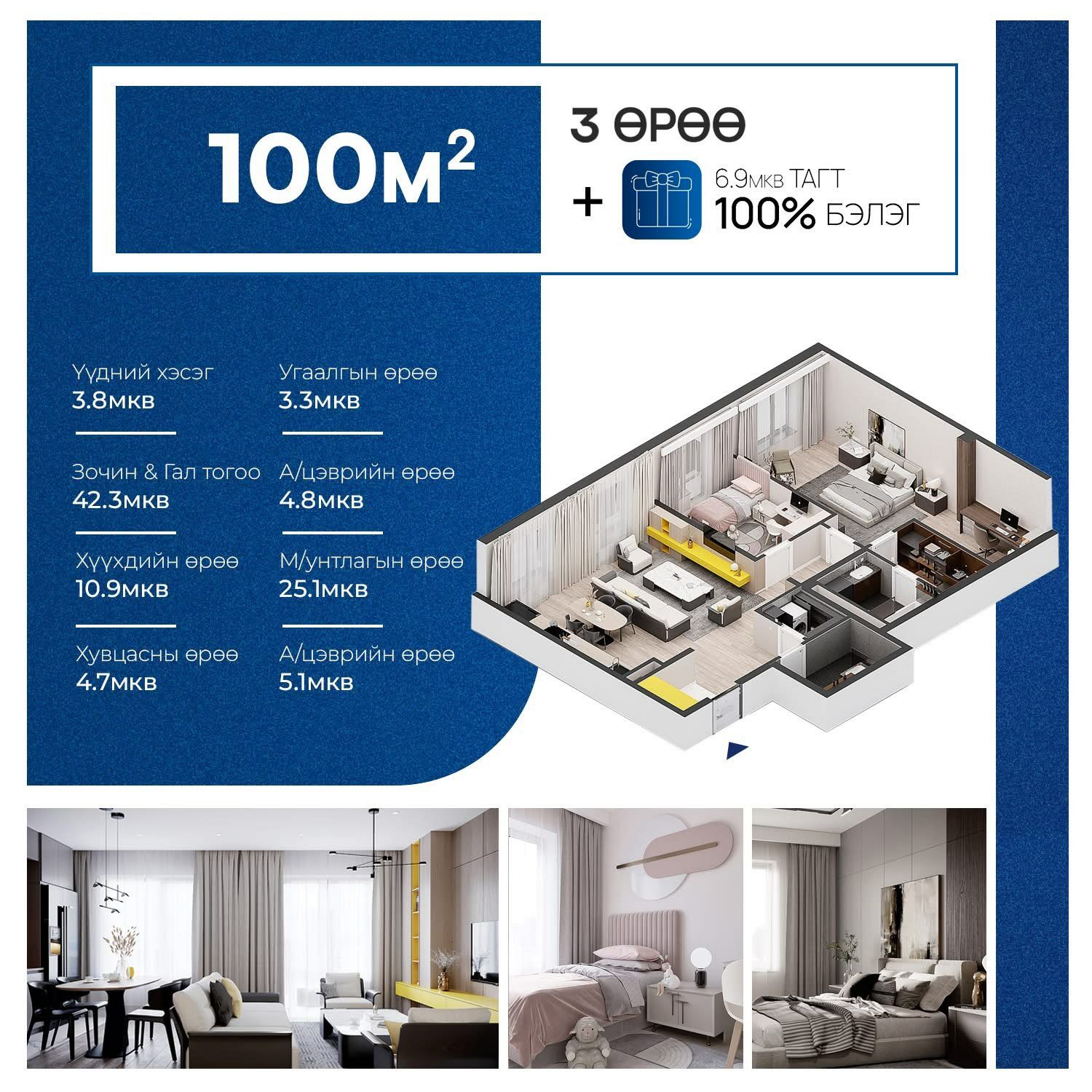 🌇100мкв 3 өрөө байр худалдана.
